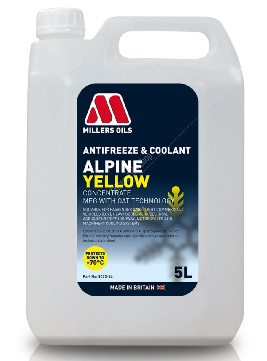 Millers Alpine Antifreeze & Coolant Concentrate Yellow - 5 Litres