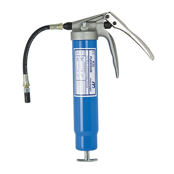 The K32 FLEXIGUN® is a classic grease gun that incorporates a unique variable stroke piston and valve arrangement for true one handed operation. The push in handle is easy to use and requires much less effort to operate. Increased pressure can be produced by short strokes (low volume) or high volume using a long stroke (low pressure). Heavy duty pistol grip construction with comfortable ergonomics. The K32 FLEXIGUN® is fully repairable with a strong die cast head and heavy gauge steel barrel for extra long service life.