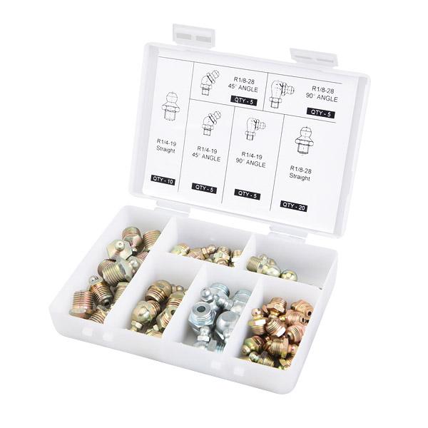 This Groz 50 piece grease nipple pack comes in an easy to ready selection box which is durable and easy to store, all of the BSPT grease fittings are made from quality steel.