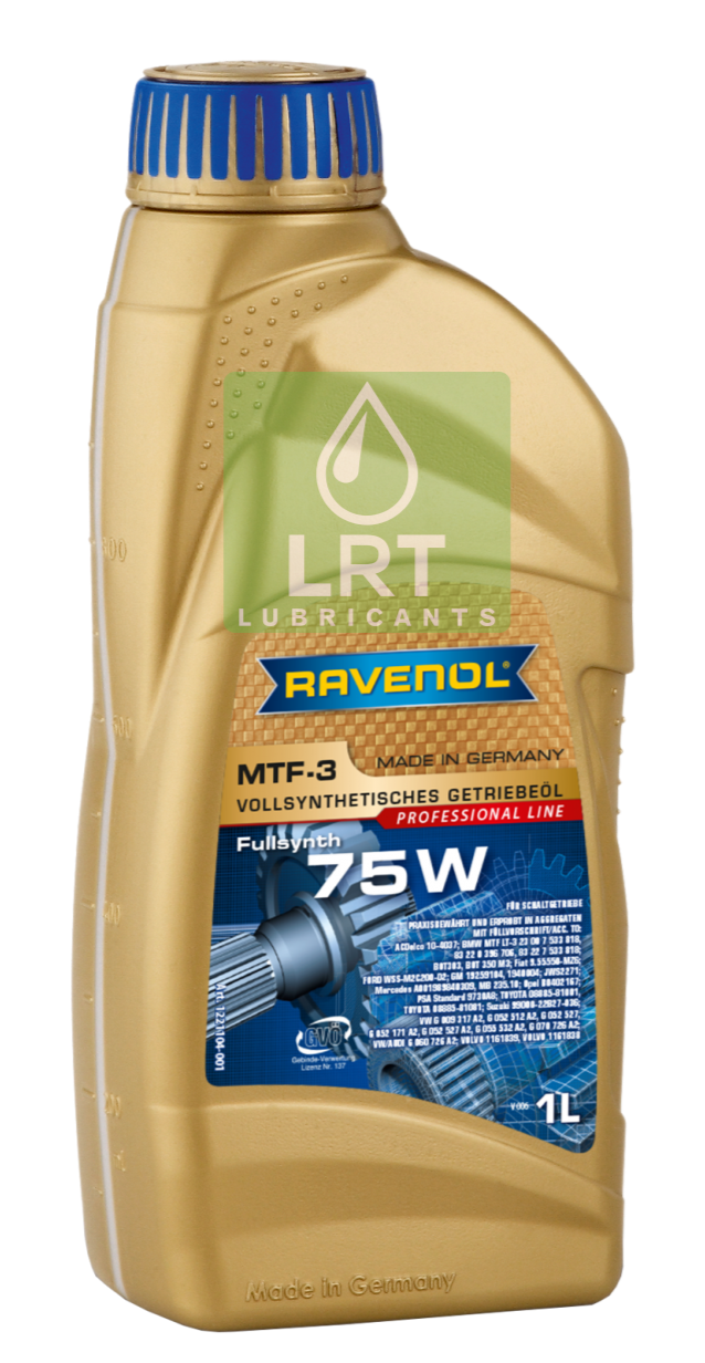 RAVENOL MTF-3 75W Transmission Fluid is fully synthetic, low viscosity fuel efficient gear oil formulated using the latest PAO synthetic technology and special additive systems to combat very high mechanical and thermal loads, even at the longest oil change intervals.